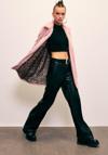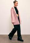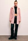 Düz yaka, uzun kol, kalça altı boy, cepli, leopar astarlı, peluş kaban.