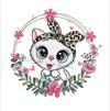 Reysa Tasarım Leopar Bandanalı Kedi Çiçek Çerçeveli Duvar Stickerı
