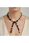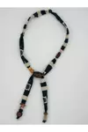 Snartun Leopar Desenli Boncuklu Kumaş Kolye