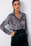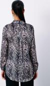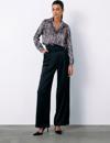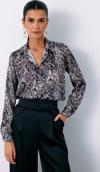 Ön düğmeli kapama, manşetli düz kol, kalça altı boy, leopar desenli klasik gömlek.