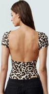 Bu sezonun en göz alıcı parçası olan leopar desenli sırtı açık crop bluzumuz, benzersiz tarzınızı yansıtacak. Mikro likralı interlok kumaştan üretilen bu bluz, vücudunuza mükemmel oturarak gün boyu konfor sunar. Sırt dekoltesi ile cesur ve şık bir görünüm elde ederken, kısa kolları ve kayık yakasıyla yaz aylarında serin kalmanızı sağlar. Günlük kombinleriniz için ideal olan bu bluz, jean pantolonlarınızla veya şortlarınızla mükemmel bir uyum sağlayacaktır. Rahatlığı ve şıklığı bir araya getiren bu bluz, gardrobunuzun vazgeçilmez bir parçası olacak.
