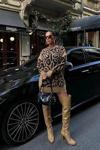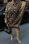 Leopar Desenli Yırtık Detaylı Kazak 1344