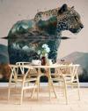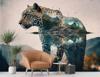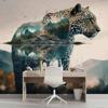 Duvar Kağıdı Baskı Leopar ve Dağ Manzaralı Duvar Kağıdı