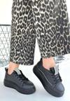 Butik Leope Siyah Cilt Bağcıklı Spor Ayakkabı