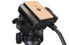 Tripod sıvı destekli bir başlığa sahiptir. Diğer modellere kıyasla esas avantajı pürüzsüz hareketidir. Video klipler sarsılma ve ani kesilmeler olmadan göze daha fazla hitap ettiği için, bu sistem video çekimi sırasında son derece önem taşır. Başlığı özel bir çevirme kolu ile kontrol edebilirsiniz. Başlığı yatay şekilde 360° döndürebilir ve ayrıca yükseltebilir veya alçaltabilirsiniz. Tüm bu yönlerde kilitleme düğmeleri bulunur.