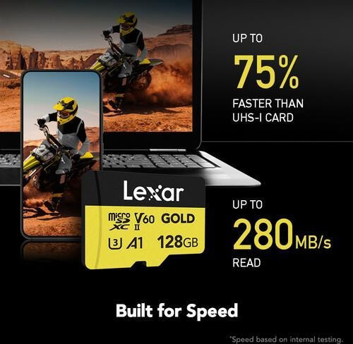 Bu Lexar Professional GOLD UHS-II microSDXC UHS-II kartı, büyük miktarda dosyayı yakalayıp hızla aktarması gereken drone ve aksiyon kamerası kullanıcıları için idealdir.