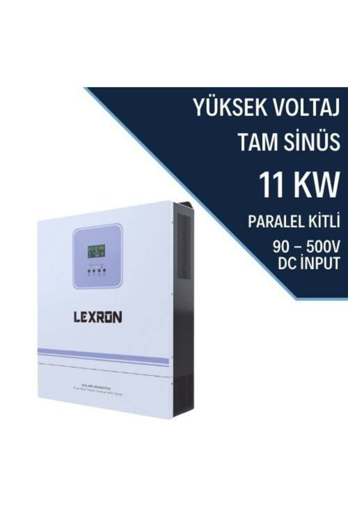 Lexron 11KW 120-500V HV 2X80A MPPT AKILLI INVERTER (GİRİŞ) Çalışma Voltajı 230 VAC Ayarlanabilir Voltaj Aralığı 154-264 VAC Frekans Aralığı 50 Hz / 60 Hz (ÇIKIŞ) Max Verim 94% Demeraj Gücü 22000 VA (AKÜ)Voltajı 48 VDC Aşırı Yük Koruması 56,4 VDC Max Şebeke Şarj Akımı 80A+80A (SOLAR ŞARJ) Akımı 2X80A (160A) Açık Devre Gerilimi (max) 500 VDC Stand-by Güç Tüketimi 2W Boyut(mm) 570.8x500x148.2mm Ağırlık(kg)DATASHEET 19.5kg Teknovasyon Arge Bilişim Dan.