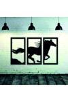 80X50 CM'lik üçlü lazer kesim at figürlü tablolar.