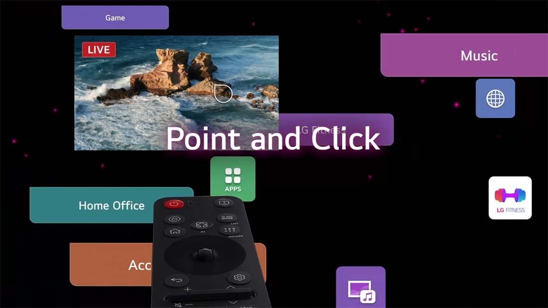 AI Sihirli Kumanda ile başka bir cihaza gerek duymadan televizyonunuzu kolayca yönetin! Hareket sensörü ve kaydırma tekerleği ile bir temassız fare gibi kullanmak için yöneltin ve tıklayın veya kolayca sesli komut verin.