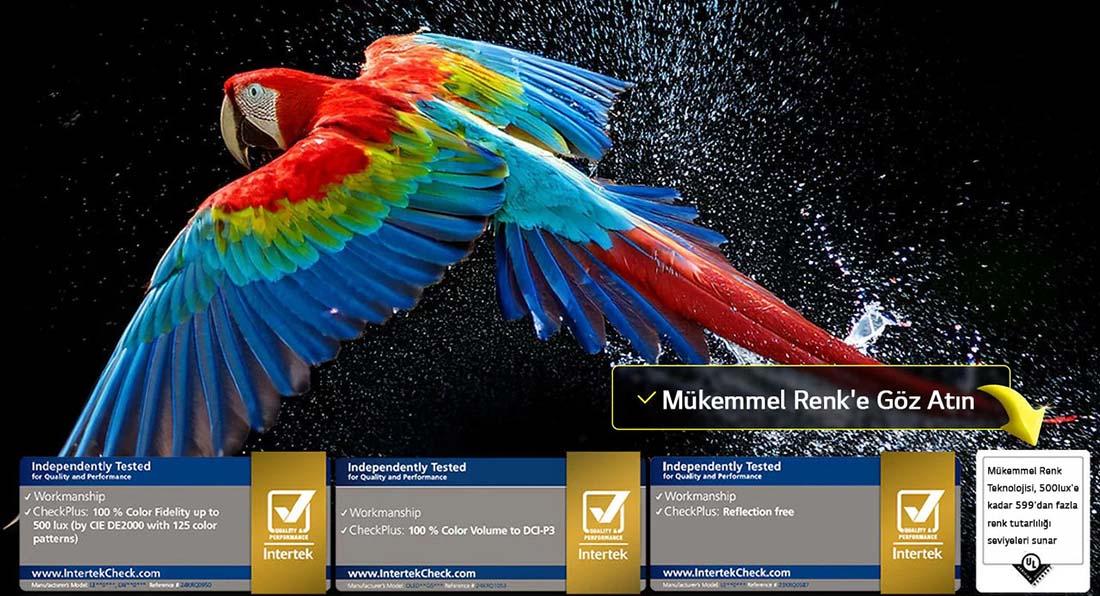 *LG OLED Ekran, 125 renk modeli ile CIE DE2000 standardına göre ölçülen %100 Renk Doğruluğu için Intertek tarafından onaylanmıştır.
