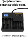 LCD Ekran: Şarj durumunu, voltaj ve kapasite bilgilerini anlık olarak gösterir.