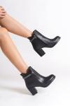 LIA Fermuarlı Ortopedik Taban Taşlı Topuklu Kadın Bot  CST - Siyah
