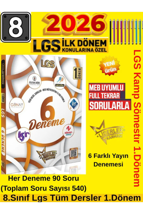 - 8. sınıf öğrencilerinin LGS sınavına hazırlık sürecinde ihtiyaç duyduğu kapsamlı bir kaynak olan Liderler Karması Deneme Seti, 6 adet deneme sınavını içerir.