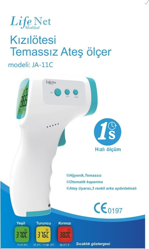 Ateş Uyarısı: Sıcaklık, ayarlanan programlanan sınırı aştığında alarm görsel ve işitsel olarak uyarır ve vücut ısısını temas etmeden ölçebilir.