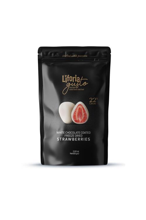 Liforia Freeze Dried Tane Çilek Beyaz Çikolata Kaplı- Dondurularak Kurutulmuş Meyve