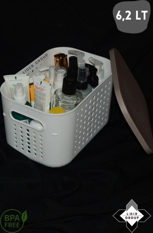 Liground Lova 13 Lt Bubble Kapaklı Gri Saklama Kutusu - Çok Amaçlı Organizer Sepet - Düzenleyici 1 Adet