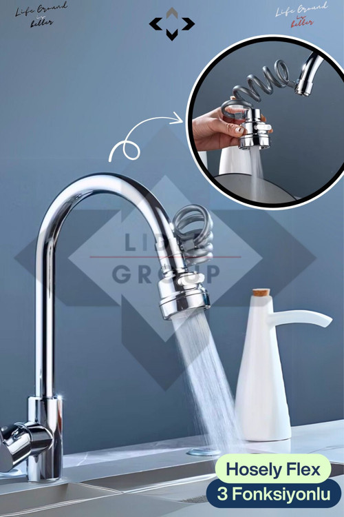 Liground Uzatma Hortumlu 3 Fonksiyonlu Musluk Başlığı Batarya/Musluk Uzatma Aparatı Kuaför Berber Musluk Ucu