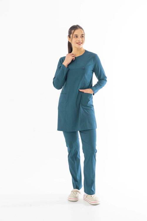 Likra Uzun Kol Doktor Hemşire Forması Alt Üst Takım Petrol Yeşili (LTST20021)