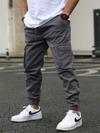 Akman likralı beli ve paçası lastikli füme kargo pantolon