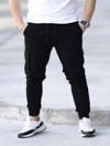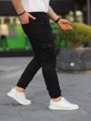 likralı beli ve paçası lastikli siyah kargo pantolon