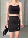 KAZAX Likralı Gabardin Dört Düğmeli Etek, şıklığı ve rahatlığı bir arada sunar. Bu etek, zarif görünümüyle günlük kullanıma ve özel günlerde de tercih edilebilir.