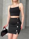 KAZAX Likralı Gabardin Dört Düğmeli Etek, şıklığı ve rahatlığı bir arada sunar. Bu etek, zarif görünümüyle günlük kullanıma ve özel günlerde de tercih edilebilir.