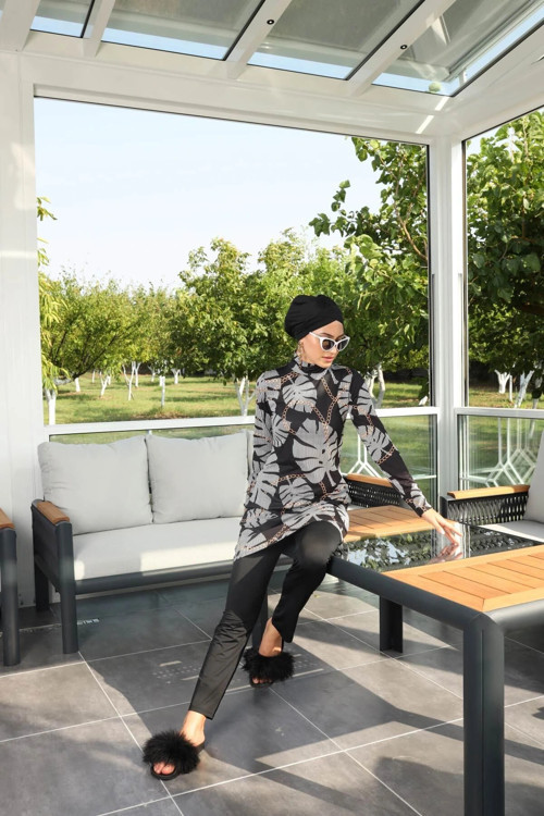Uzun kollu tasarımı ile güneşin zararlı ışınlarına karşı ekstra koruma sunarken, tesettür giyim standartlarına uygunluk gösterir.