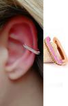 Lila neon mineli zirkon taş detaylı gümüş rose sıkıştırmalı kıkırdak küpe