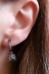 Lila zirkon taşlı üç boyutlu gümüş rose trend küpe