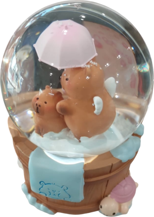 Bu büyüleyici kar küresi, içindeki çiftli capybara figürü ile dikkat çeker.