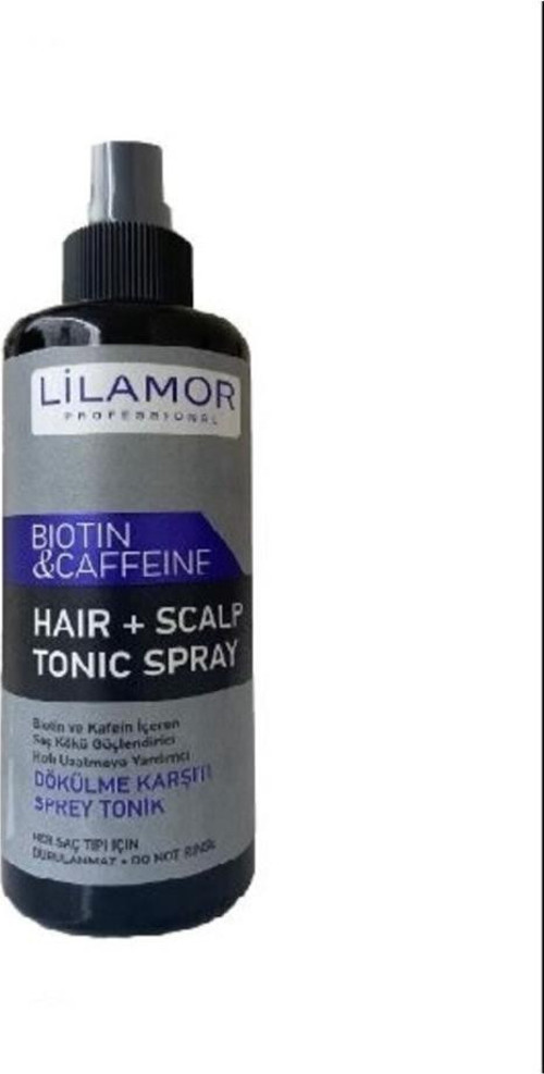 • Lilamor Professional Biotin & Caffeine Saç Sprey Tonik 250 ml Dökülme karşıtı sprey tonik 250 ML Hızlı uzamaya yardımcı olur. Her saç tipi için uygundur durulanmaya ihtiyacını yok. Durulanmaz Saç köklerinizi güçlendirmeye yardımcı olur Biotin ve kafein içerir.