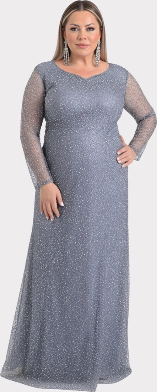 Detay: Bu model, büyük beden kalp yaka tasarımıyla feminen bir zarafet sunan uzun kollu abiye elbisedir. Üst beden full taş ve payet işlemeleriyle göz alıcı bir ihtişam sergilerken, yine tül ve taş süslemeli kollar hem transparan hemde sofistike bir detay kazandırır. A kesim formu ve kuyruklu uzun tasarımıyla özel davetlerde ihtişamlı bir duruş sağlayan bu yırtmaçsız, astarlı ve astar üstü tül abiye, şıklığı ve konforu bir arada sunar;