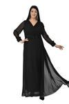 Lilas XXL Kadın Büyük Beden Uzun Şifon Abiye Elbise 9573 Siyah