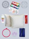 KİT İÇERİĞİ •2 adet İşlemeye Hazır Duck Kumaştan Arkası fermuarlı Kırlent. Renk Krem •1 adet Nurge Panç İğnesi •1 adet 19 cm plastik vidalı kasnak •12 adet Hello VİBRANT Panç İpi •1 adet Karbon Kâğıdı • 2 Adet Şablon •Punch tutkalı
