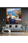 Liman Manzarası ve Kedi Kanvas Tablo Dijital Baskı Tablo Modeli