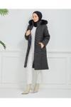 Fermuarlı kapama özelliği sayesinde pratik kullanım sunan tesettür mont, günlük kullanımda kolaylık sağlar.