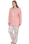 Pijamoni Kadın Süet Önden Düğmeli Likralı Pijama Takımı 5 - 1 Adet Bordo-2XL