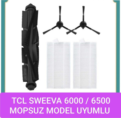 TCL Sweeva 6000 6500 mopsuz model ile Uyumlu Yedek Fırça Filtre Paspas Seti /// 1 Adet Ana Fırça + 2 Adet Yan Fırça + 2 Adet Hepa Filtre /// İthalatçı garantilidir.