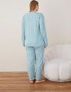 Boyraz Lindros Kadın Pamuklu Düğme Yaka Raporlu İnterlok Battal Pijama Takımı 05108 - 1 Adet Su Yeşil-3XL