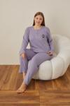 Pijamerry Kadın Kışlık Bisiklet Yaka Kadife Pijama Takımı 3033A - 1 Adet Açık Mor-L