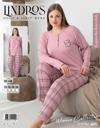 Lindros Kadın Pamuk'lu Düğme Yaka Raporlu İnterlok KIŞLIK Battal Pijama Takımı 05148 - 1 Adet
