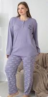Lindros Kadın Pamuk'lu Düğme Yaka Raporlu İnterlok KIŞLIK Battal Pijama Takımı 05150 - 1 Adet