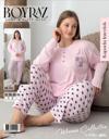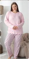 Lindros Kadın Pamuk'lu Düğme Yaka Raporlu İnterlok KIŞLIK Battal Pijama Takımı 05151 - 1 Adet