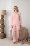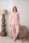 Kadın Pamuk'lu Düğme Yaka Raporlu İnterlok KIŞLIK Pijama Takımı 0112 - 1 Adet