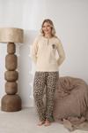 Kadın Pamuk'lu Düğme Yaka Raporlu İnterlok KIŞLIK Pijama Takımı 06043 - 1 Adet