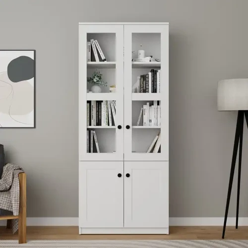 - Lucas 4 Kapaklı Beyaz Vitrin - Kitaplık ve Çok Amaçlı Dolap