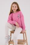 Noble Kids Çiçek Desenli Kız Çocuk Sweatshirt & Tayt Takımı – Pembe