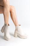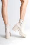 LISSE Fermuarlı Ortopedik Taban Kalın Topuklu Kadın Bot CKT - Krem