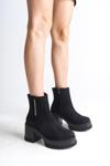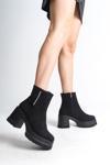LISSE Fermuarlı Ortopedik Taban Kalın Topuklu Süet Kadın Bot SST - Siyah