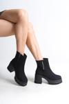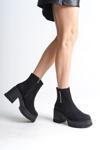 Joy Ayakkabı LISSE Fermuarlı Ortopedik Taban Kalın Topuklu Süet Kadın Bot SST - Siyah